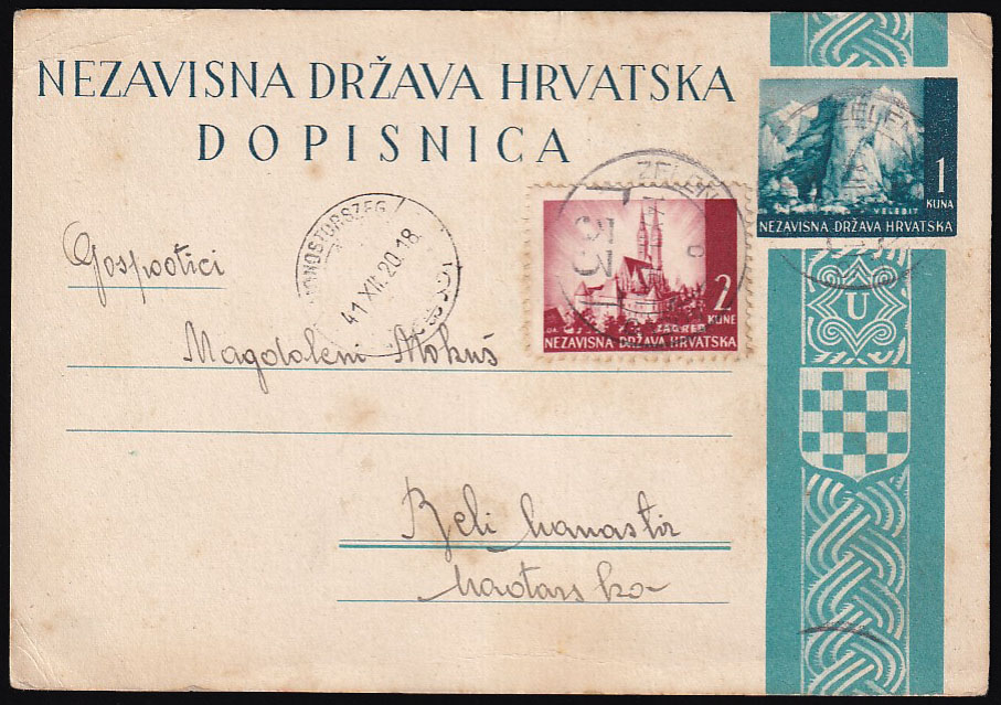 - Dopisnica upućena prugom ZELENIKA-SARAJEVO 33 u Beli Manastir 14.12. 1941.