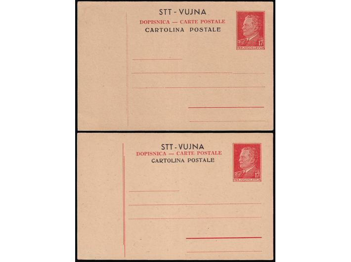 Opis: Dopisnice 17 din. dva tipa Michel P13 tanja i deblja slova pretiska. Odlična kvaliteta.