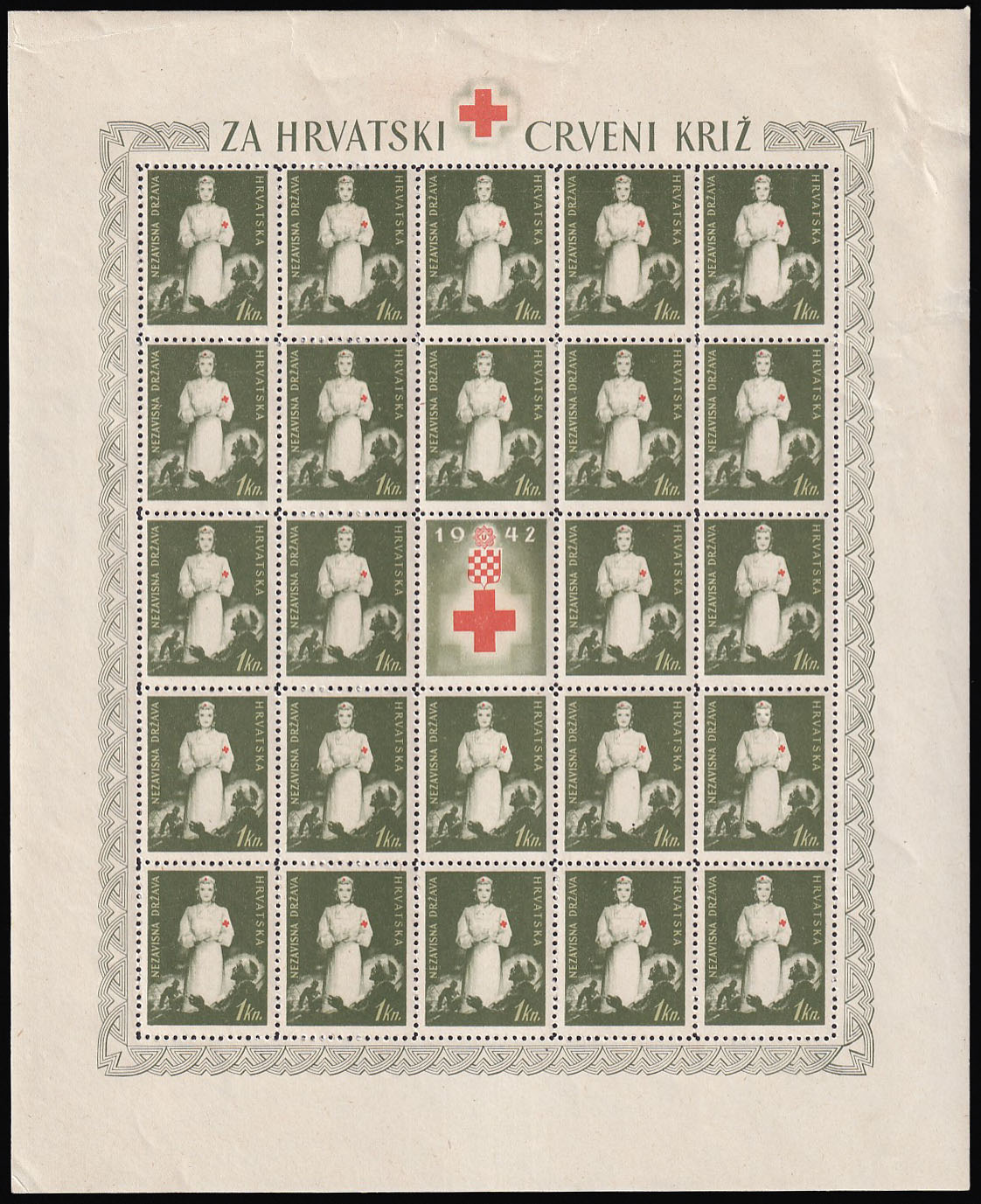 - Doplatna marka Crveni križ Michel br. 1 kompletan arak sve s crvenim križem na kapi.