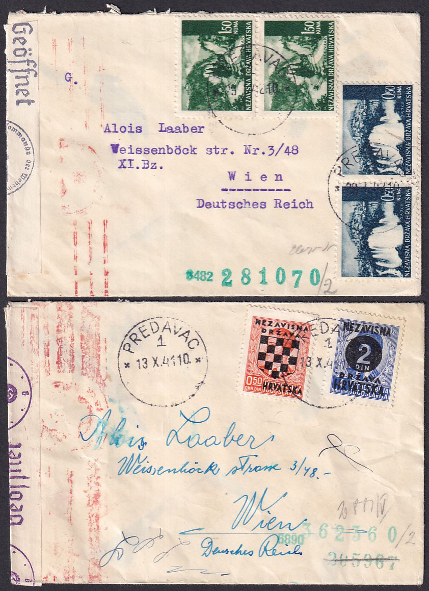 Opis: Dva pisma manjeg formata upućena iz Predavca u Njemačku 13.10. 1941 i 29.01. 1942. Cenzurirana po OKW cenzuri. Dobra kvaliteta.