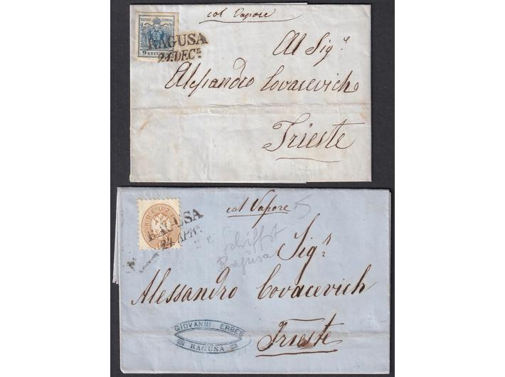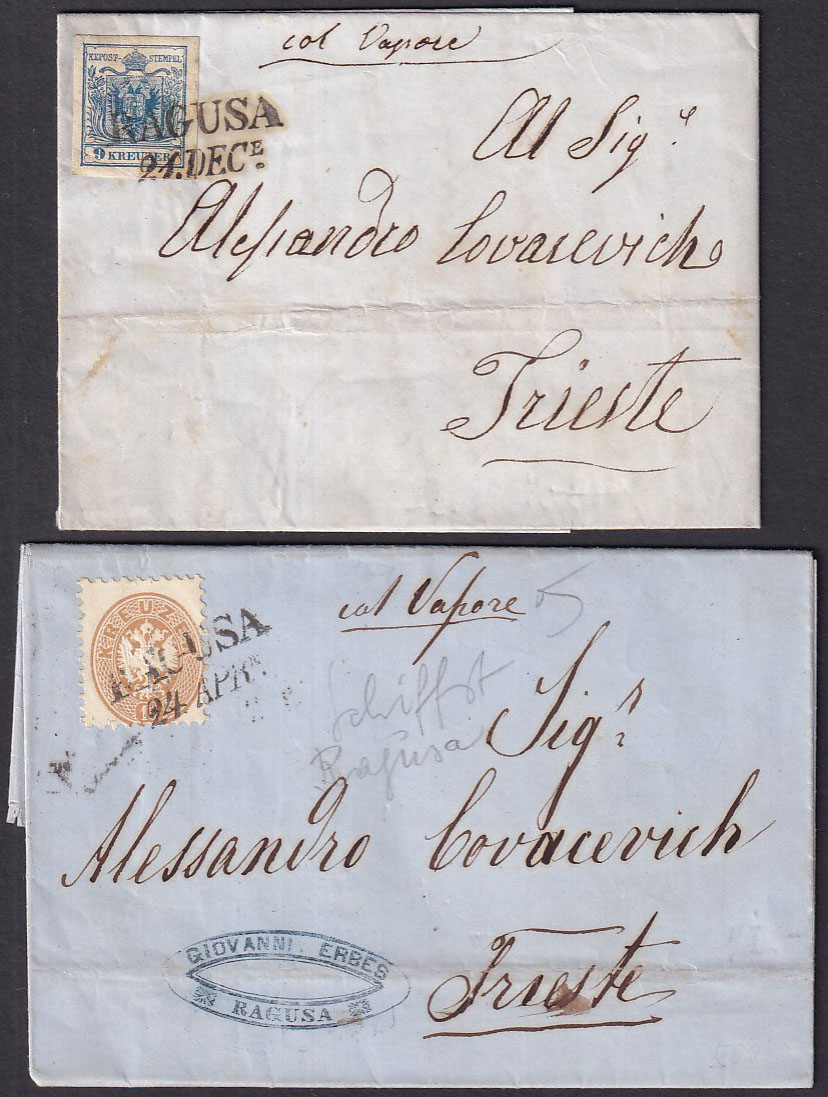 Dva pisma s kompletnim sadržajem upućena iz Dubrovnika u Trst.