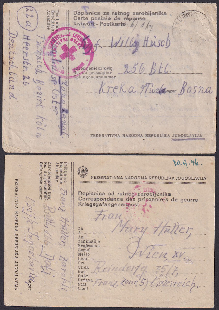 - Dvije dopisnice za ratne zarobljenike u Jugoslaviji.