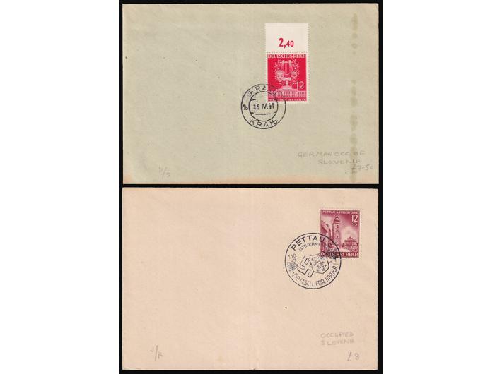 Opis: Dvije koverte sa markama Reicha i žigovima Kranj i Pettau. Dobra kvaliteta.