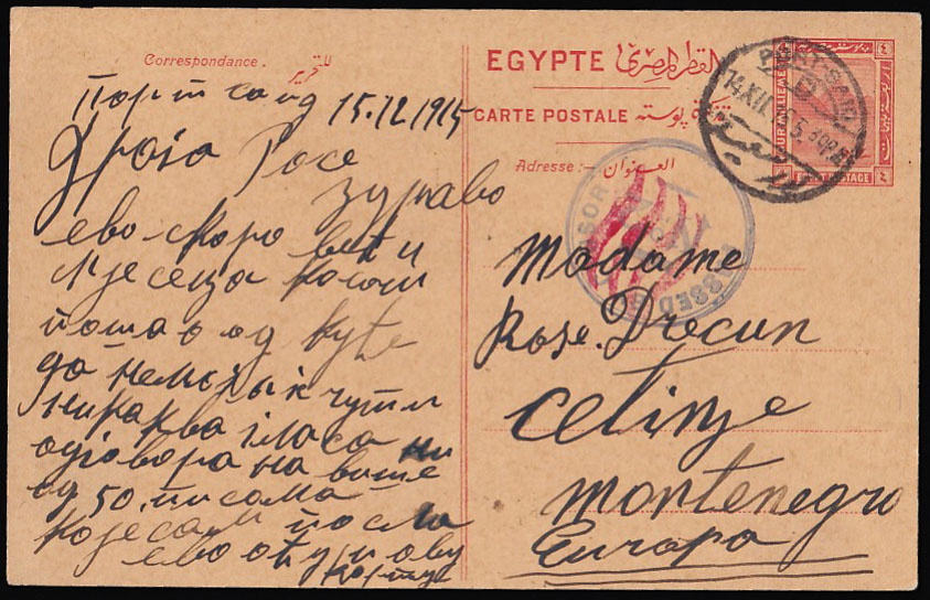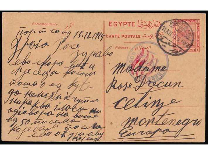 - Egipatska dopisnica upućena 14.12. 1915. iz Port Saida na Cetinje.