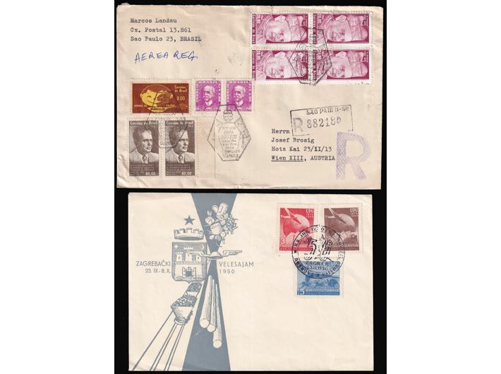Opis: Ex Jugoslavija, lot oko 50 pisama, razgednica, dopisnica FDC-a i MC. Visoka kataloška vrijednost, povoljna početna cijena.