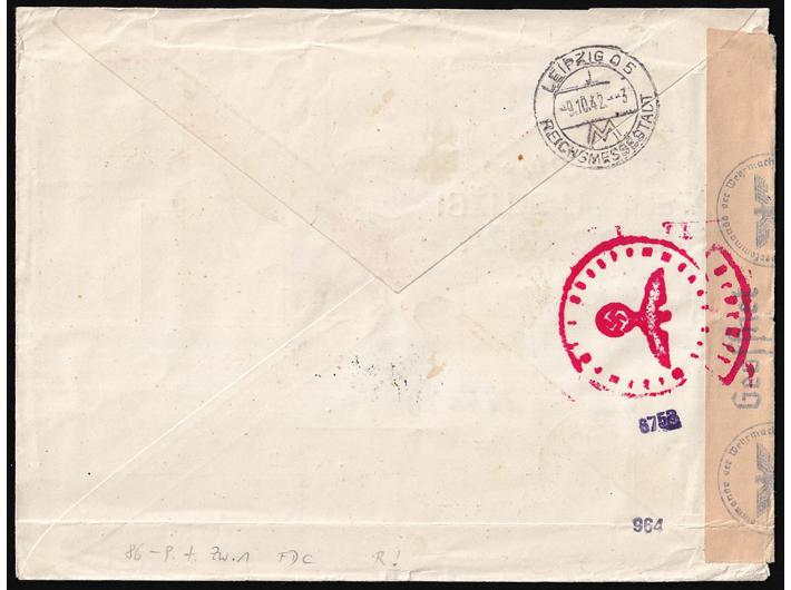 • FDC Crveni Križ 1942 preporučeno upućen iz Zagreba u Leipzig (Njemačka).
