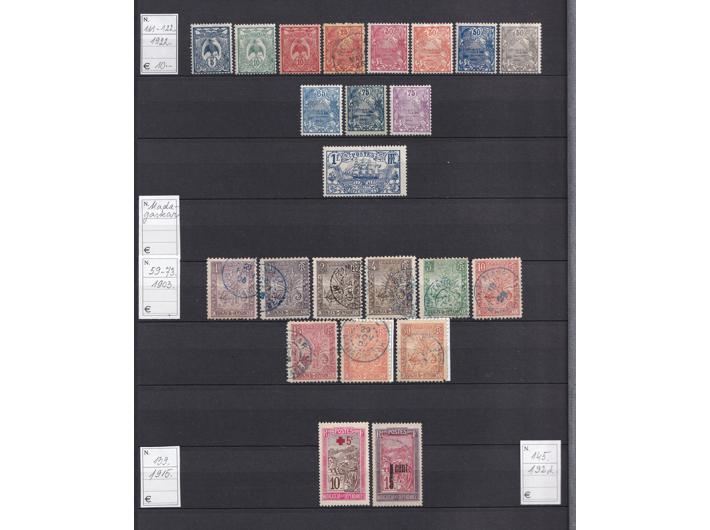 Opis: Francuske kolonije, zbirka vrlo lijepih i živopisnih maraka francuskih kolonija. Sve obrađeno prema Michel katalogu ukupne kataloške vrijednosti 1850.- €. Alžir, Tunis, Gornja Volta, Senegal, Gvineja, Obala Bjelokosti, Dahomey, Kamerun, Francuska Somalija, Đibuti, Francuska Indija, Francuska indochina, Nova kaledonija, Madagaskar, Srednji Kongo, Oubangui Chari, Čad.