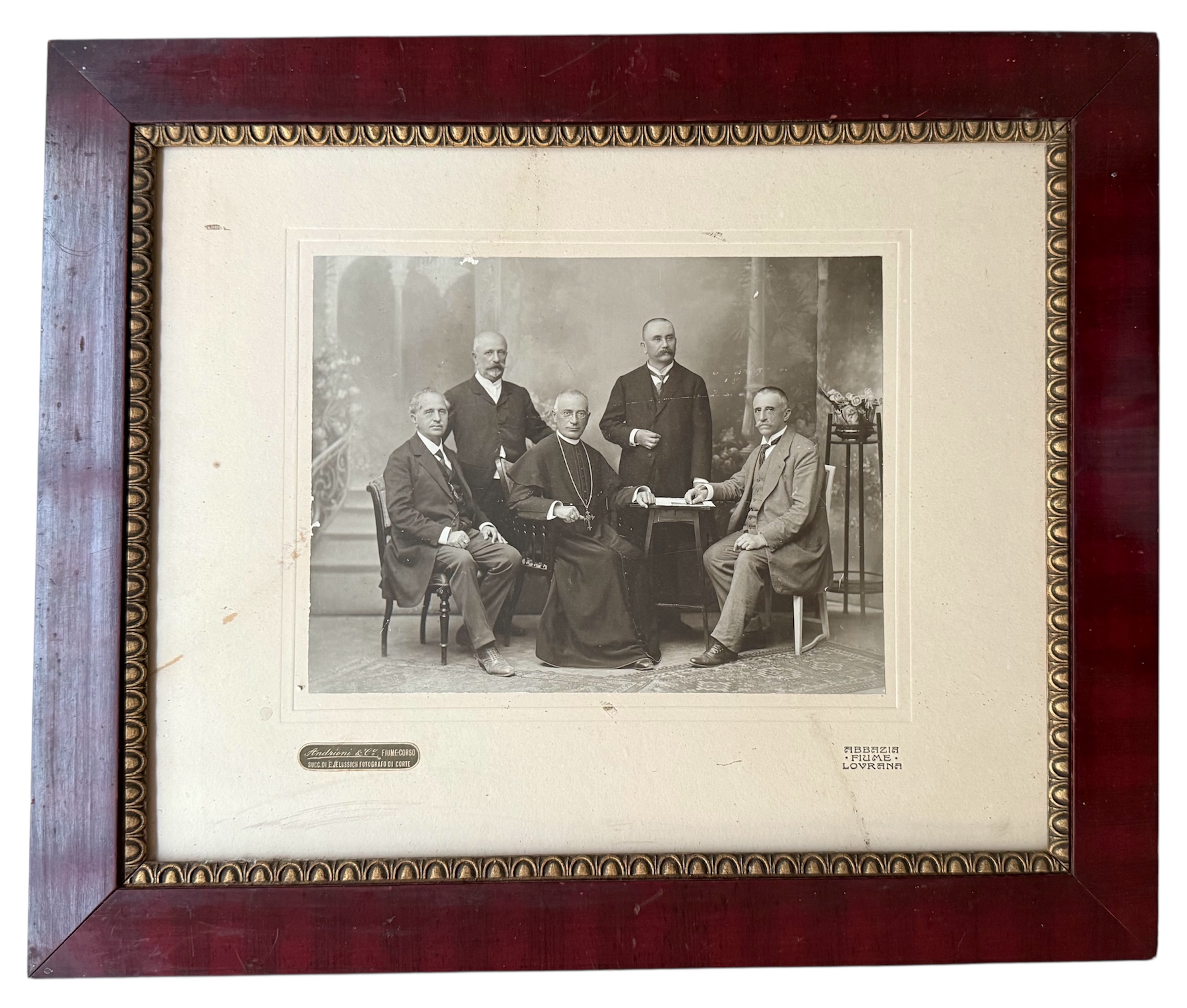 • Grupna fotografija, Abbazia-Fiume-Lovrana. Atelier Andrioni & Co. Fiume-Corso. Succ. di E. Jelussich fotografio di corte, oko 1900.