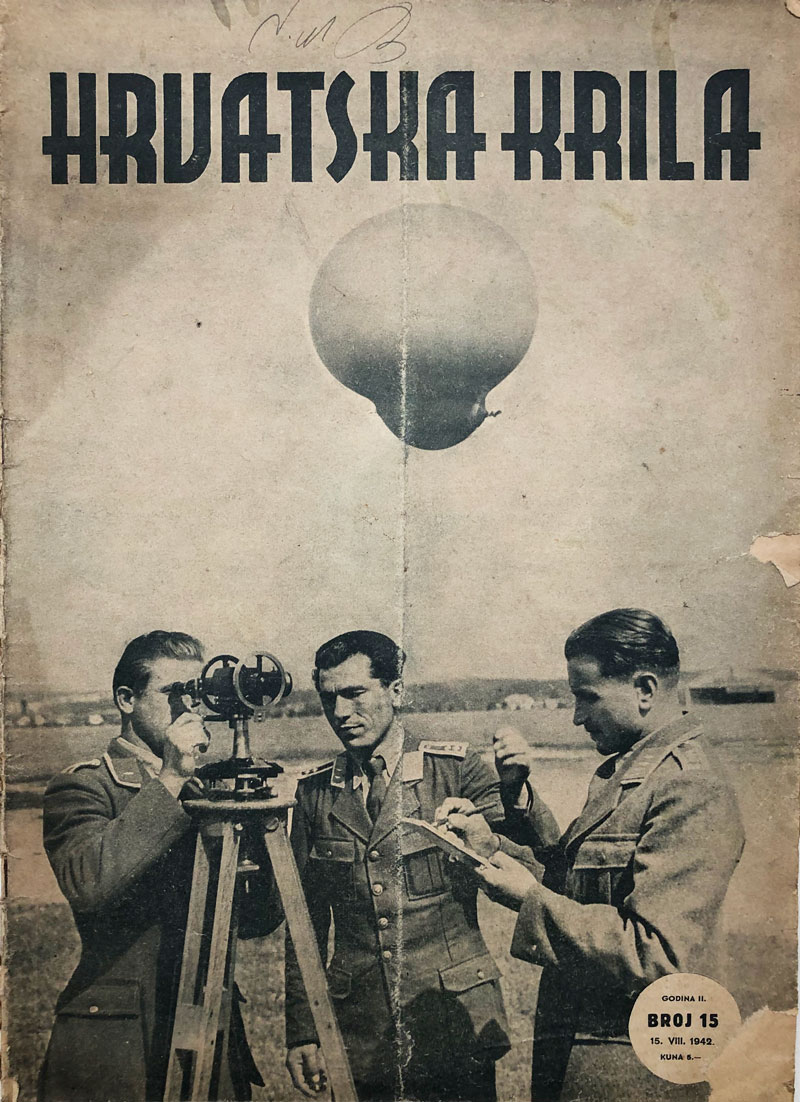 Opis: HRVATSKA KRILA br. 15/1942. Hrvatska krila je bio časopis zapovjedništva zračnih snaga Nezavisne Države Hrvatske koji je od jeseni 1941. do 1945. izlazio svakih petnaest dana (polumjesečnik). Časopis je raznim proslovima i fotografskim izvještajima pratio svakodnevni život, praktičnu obuku i borbeno djelovanje hrvatskih zrakoplovaca, a uz to je znatan prostor posvećen promidžbi zrakoplovstva, zrakoplovne tehnike i sportskog zrakoplovstva.