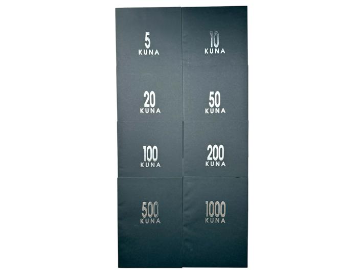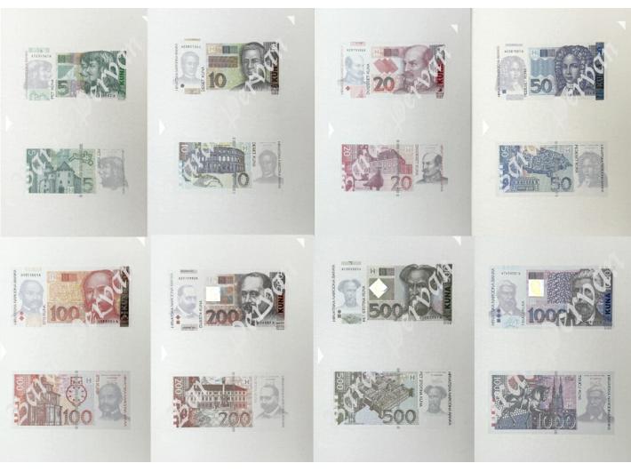 • HRVATSKA, Kune, 1993 / 1995 probni tisak za izmjenu i dogradnju postojećih novčanica, svih 8 novčanica svaka u svojoj posebnoj mapi.