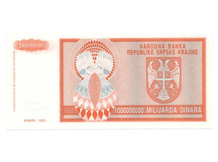 • HRVATSKA, okupacijski novac tzv. srpske krajine, 1.000.000.000 dinara 1993, bez serijskog broja, UNC