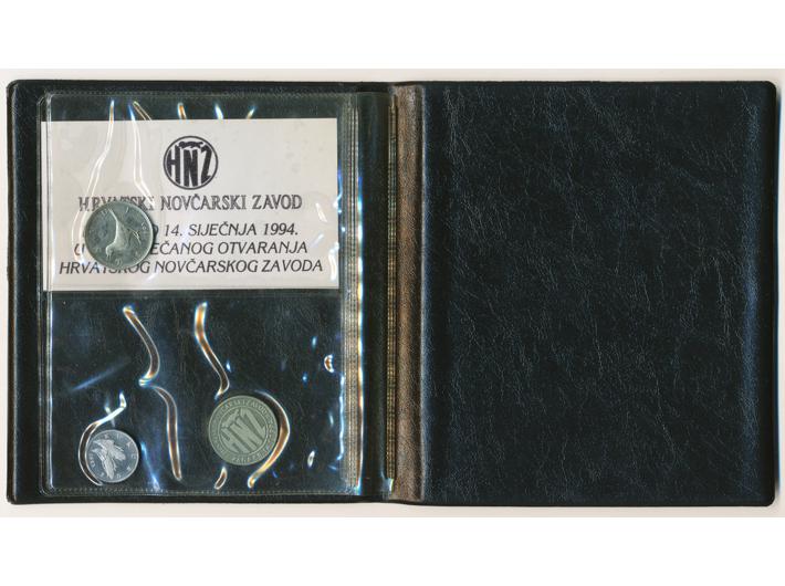 • HRVATSKA, Republika, sveščić s 1 kunom HNZ (Hrvatski novčarski zavod) iskovano 14.1.1994. povodom otvaranja HNZ-a, UNC