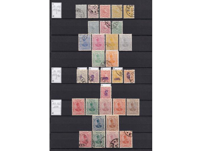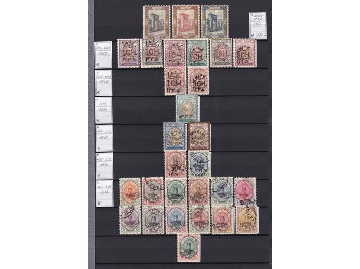 Opis: Iran, Perzija, zbirka Nezupčano izdanje 1 ch. 1875 godina crna, rekonstrukcija niza sve četiri nijanse crne (Köhler 2006 aukcija 327) jedna marka s puncom Heddergott BPP, Nezupčano izdanje 1 ch. 1878 godina crvena, rekonstrukcija niza sve četiri nijanse crvene (Köhler). Dalje sva izdanja vrlo uredna s lijepim žigovima, dobra kvaliteta, svježe boje. Sve razrađeno po kataloškim brojevima, tipovima tiska i pretiska, papirima, zupčanjima i bojama. Bez gore opisana prva dva lota preko 4000.- € kataloga.