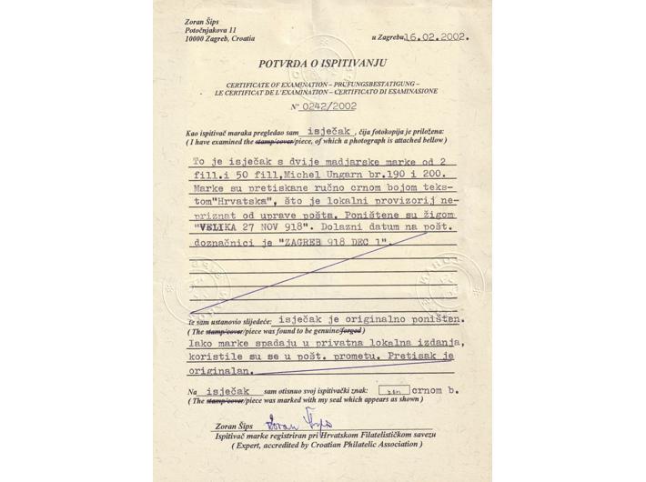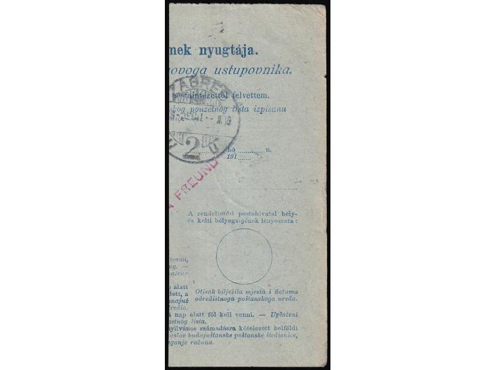 - Isječak paketne karte frankiran mađarski markama s ručnim pretiskom Hrvatska