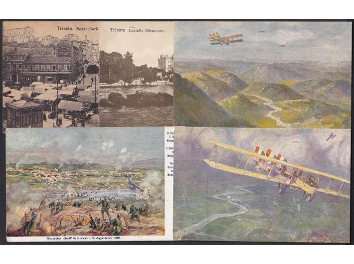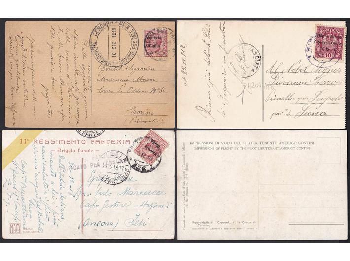• Italija, Venezia-Giulia, pet razglednica ratne tematike sa zanimljivim frankaturama.