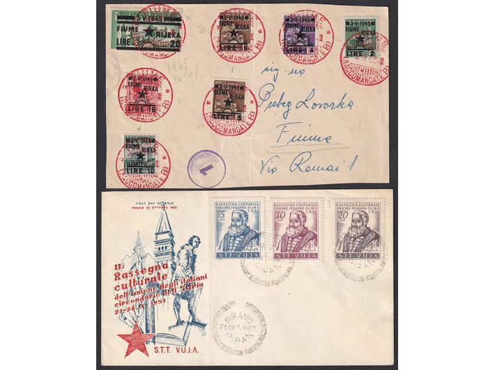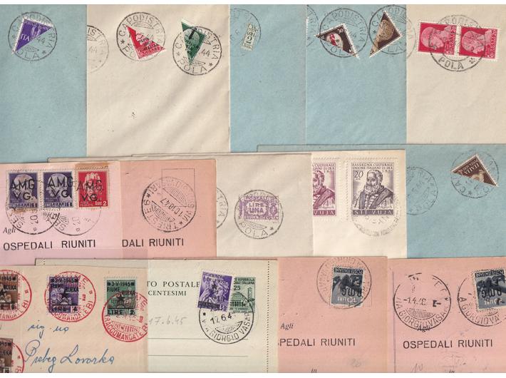 - Izdanja za Trst, Rijeku, Pulu lot 13 pisama sa zanimljivim žigovima i frankaturama.