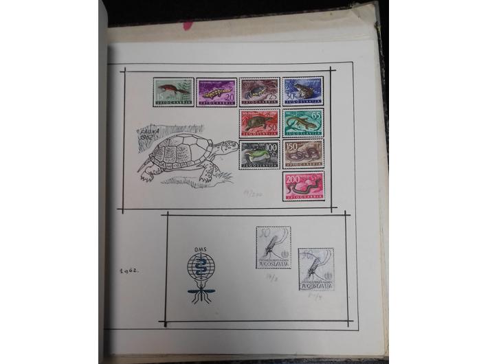 Opis: Jugoslavija, dobra zbirka na falcu. Sve ključne marke u zbirci: Michel br. Blokovi 4 A i B (Željeznice) 616-620 (Šah) 628-639 (I privreda), 655-657 (Planinari), 644-652 (Zrakoplovi), 654 (Blok ZEFIZ), 666-667 (Padobranci 2x), 730 (Esperanto), 738-749 (Prve životinje),776-787 (Prva umjetnost), 957 (Užice blok). Još puno drugog materijala. Obrađene neke pogreške tiska. Uredan prvi falc.