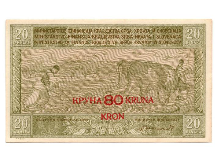 - Jugoslavija, kraljevina, 20 dinara/ 80 kruna 1919, UNC, izuzetno rijetko u ovoj kvaliteti