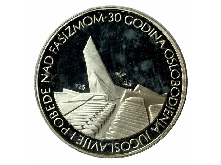 Opis: JUGOSLAVIJA, medalja "30 godina pobjede nad fašizmom", Ag (0.925) - 5 g, 24 mm