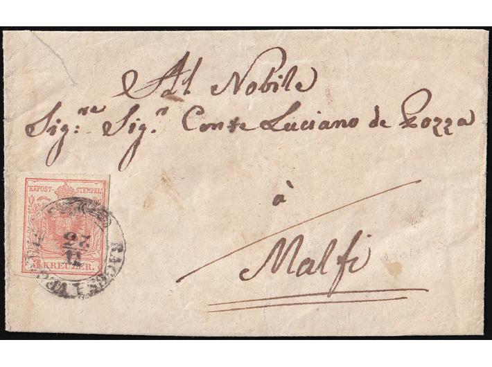 • Koverta manjeg formata upućena iz Ragusa Vechia (Cavtat) preko Dubrovnika u Malfi 23. 11.