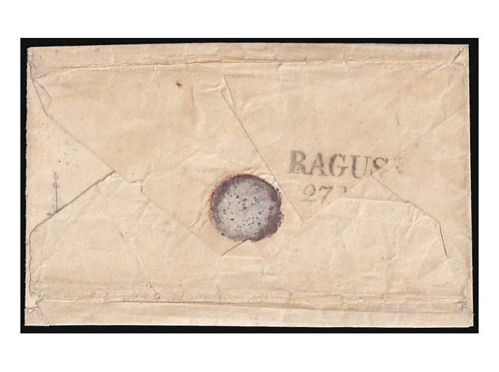 Koverta manjeg formata upućena iz Ragusa Vechia (Cavtat) preko Dubrovnika u Malfi 23. 11.