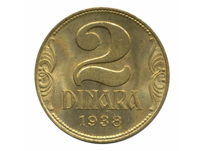 Opis: Kraljevina Jugoslavija, 2 dinara 1938, "mala kruna" Cu-Ni, UNC