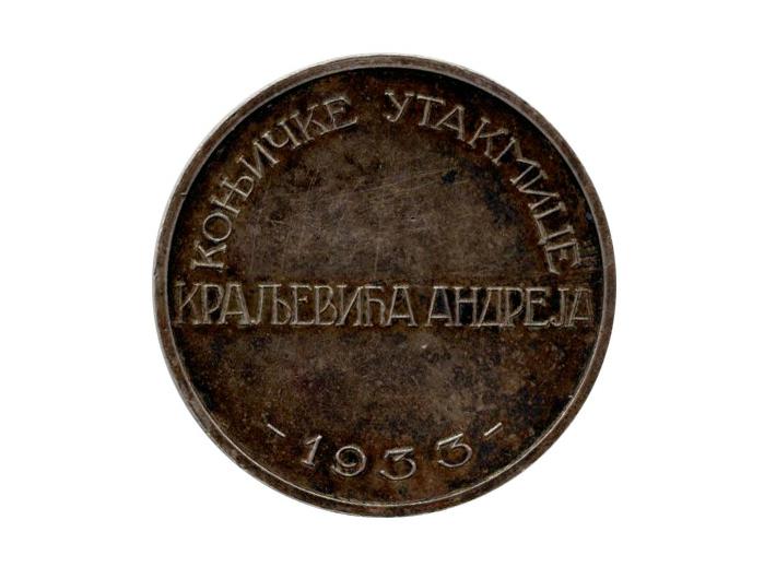 - Kraljevina Jugoslavija, 50 dinara 1933, KONJIČKE UTAKMICE kraljevića Andreja, Ag - 23 g, 36 mm, jedna od najrjeđih kovanica kraljevine Jugoslavije