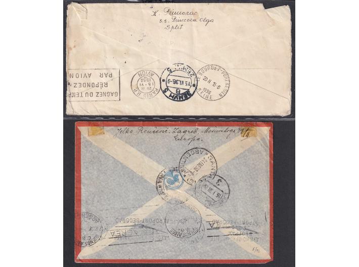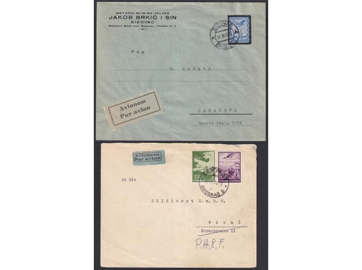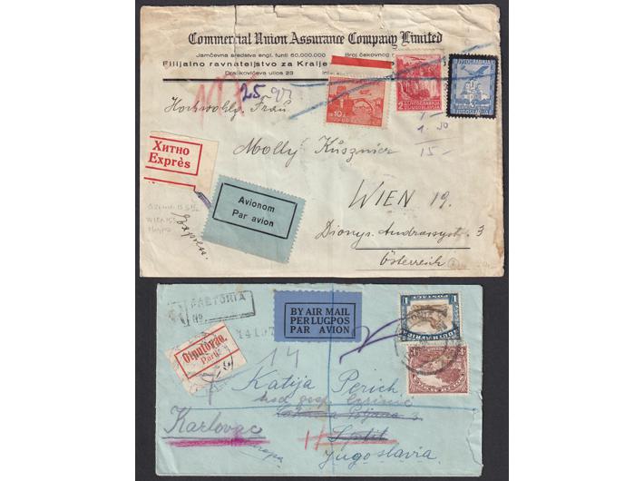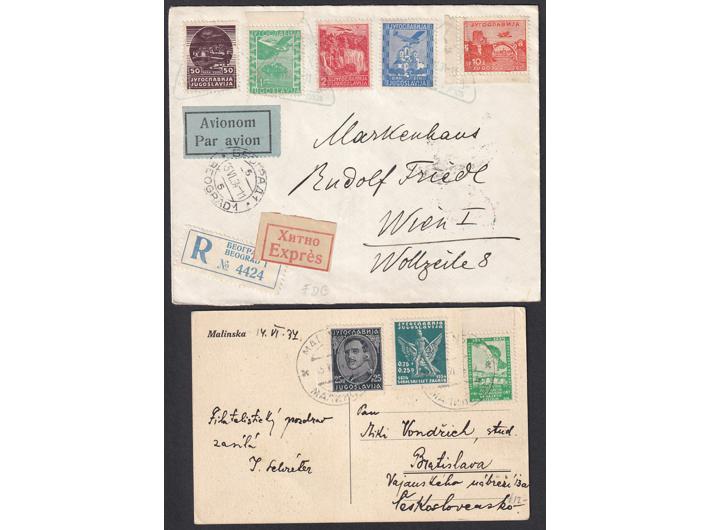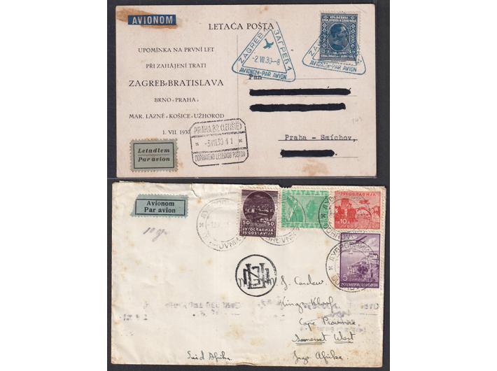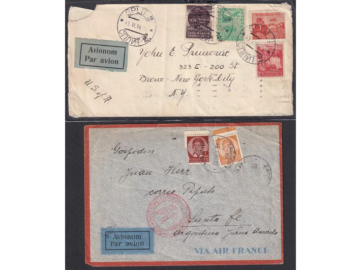 • Kraljevina Jugoslavija, lot 20 pisama, dopisnica i razglednica, većina putovalih zrakoplovom sve iz razdoblja 1930-1941.
