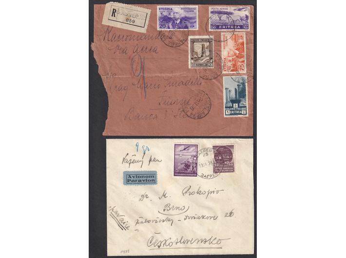 Opis: Kraljevina Jugoslavija, lot 20 pisama zračna pošta. Vrlo zanimljivo pismo ulazne pošte Talijanske Etijopije sa mješanom frankaturom maraka Talijanska Etiopija, Somalija i Eritrea. Nekoliko pisama za Veliku Britaniju. Prva i druga zračna serija na pismu itd. Obavezno pogledati.