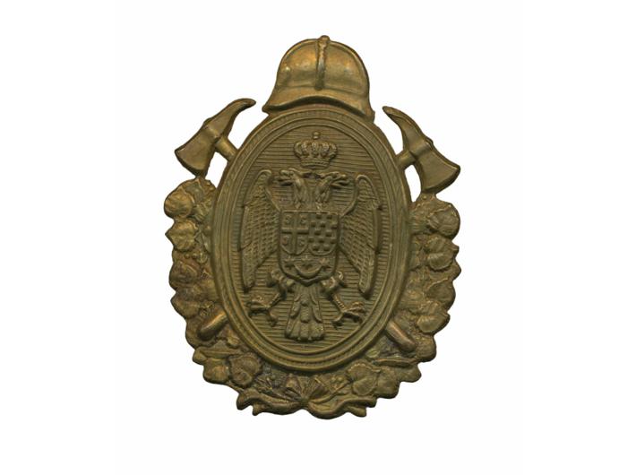 - Kraljevina Jugoslavija, vatrogasna oznaka za kapu/kacigu, AE, izvrsna kvaliteta, rijetko 44x55 mm