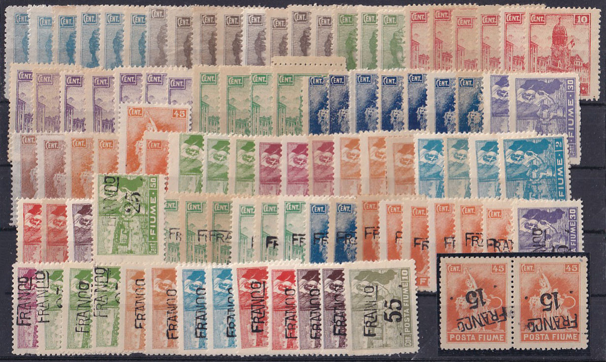 • Lot „Riječki motivi“ sa i bez pretiska i par 15/45 obrnuti pretisak