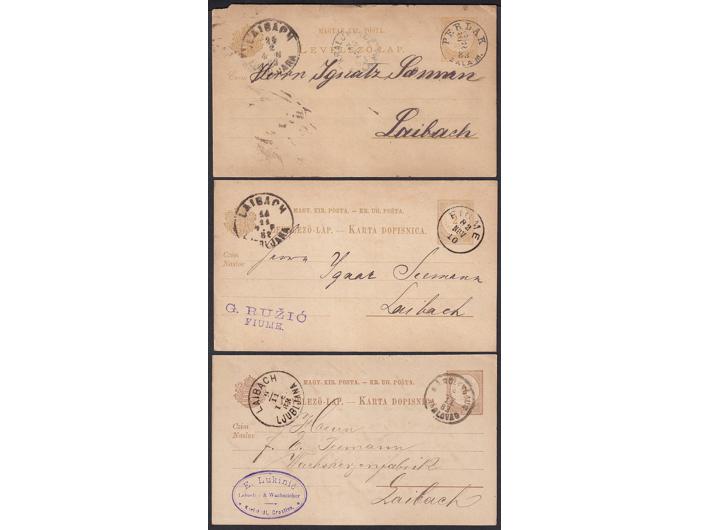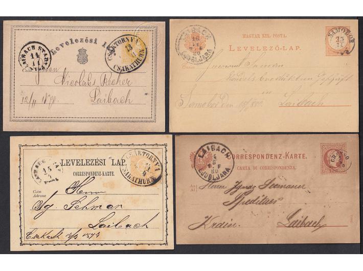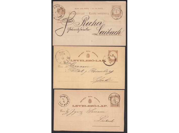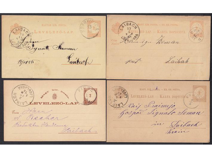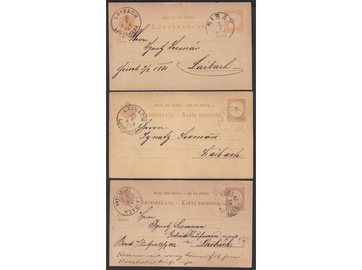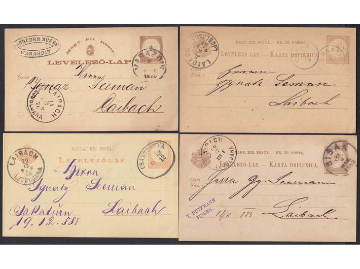 Opis: Lot 28 mađarskih dopisnica sa žigovima Hrvatskih mjesta (Varaždin, Križevci, Brod na Savi, Prezid, Čakovec, Koprivnica, Sisak, Čabar....)