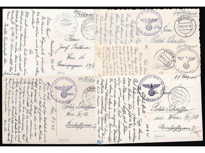 • Lot 5 razglednica SS vojne pošte upućenih iz Begunja, Brezja, Bleda, Kamnika i Kranja u Beč.