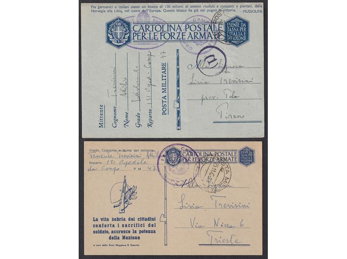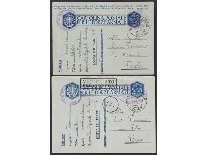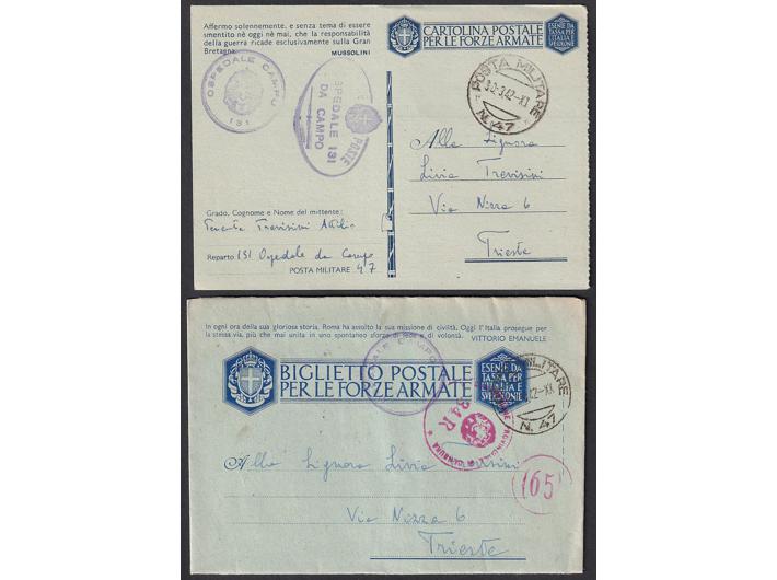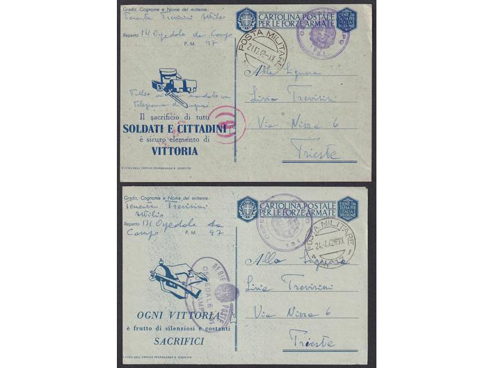 Opis: Lot 8 vojnopoštanskih dopisnica pisanih od pripadnika vojne pošte PM 47, pješačka divizija Lombardia, sa sjedištem u Delnicama i Karlovcu. Dobra kvaliteta.