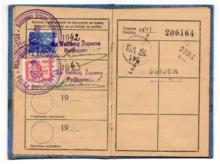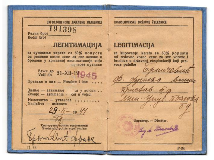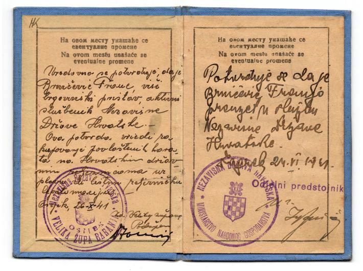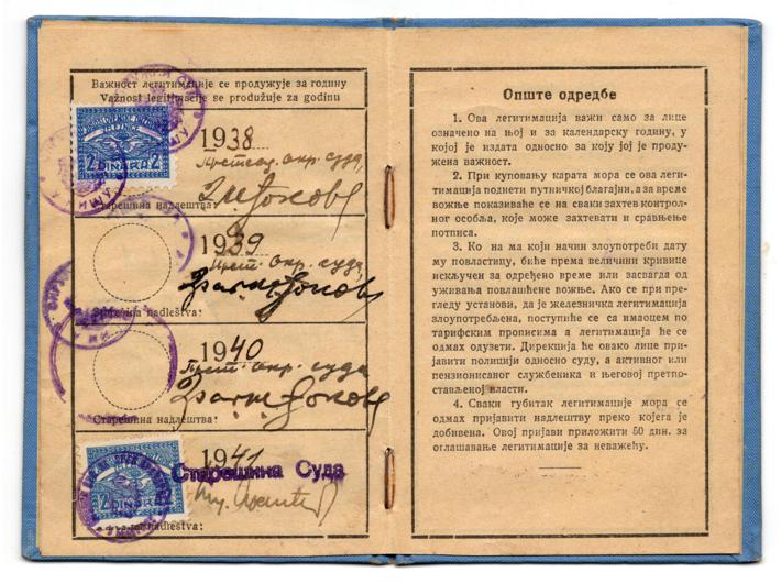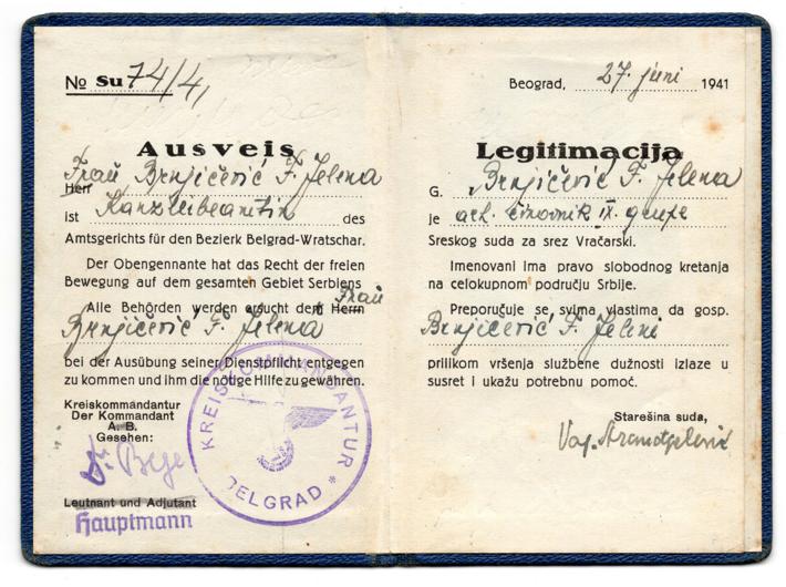 Opis: LOT LEGITIMACIJSKIH KNJIŽICA, obitelji Brničević. Kraljevina Jugoslavija, NDH, 1928-1945. Posebno zanimljiva legitimacija unutar lota sa žigom Kreiskommandantur Beograd za slobodno kretanje na cijelokupnom području Srbije i žigom sreskog Vračarskog suda.