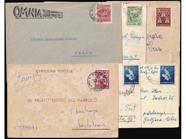 Opis: Lot šest pisama i razglednica, sve frankirano markama STT-VUJA