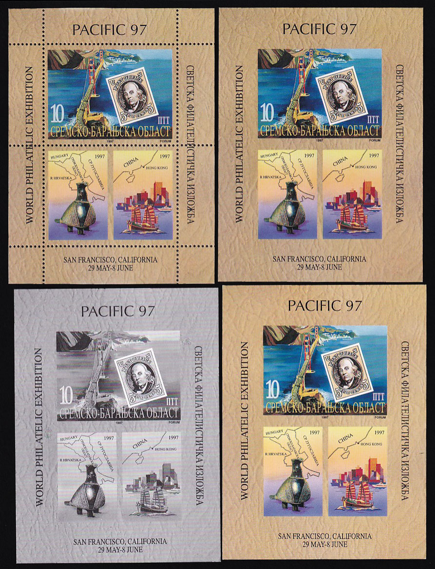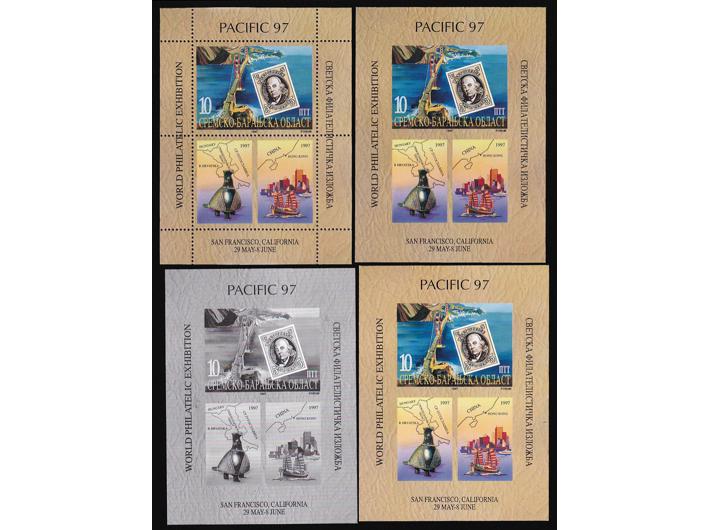 Opis: Međunarodna svjetska izložba Pacific 97. Zupčani i nezupčani blok, blok u crnotisku na papiru za umjetnički tisak bez gume i nezupčani blok bez gume na papiru za umjetnički tisak. Opisano u Michelu pod Bl I. Odlična kvaliteta.