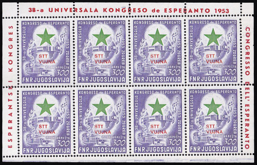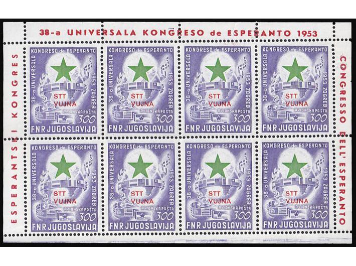 Opis: Michel br 104 Esperanto kongres, arčić s promiđbenim tekstom na margini. Na gornjoj margini jedva vidljiv trag falca na dva mjesto. Vrlo rijetko u arčiću.
