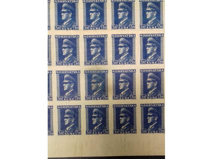 Opis: Michel br. 106 nezupčani arak na papiru bez gume. Spoj dvaju araka papira između 7 i 8. vodoravnog reda. Izuzetno rijetko.