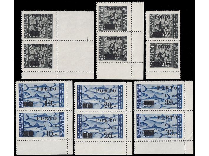 • Michel br. 14/19 okomiti parovi, sve donje marke „tanke brojke“.