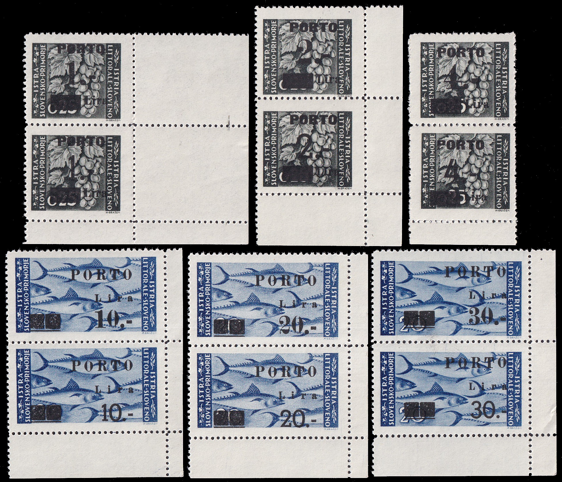 Opis: Michel br. 14/19 okomiti parovi, sve donje marke „tanke brojke“. Opisano u PS pod 15 PO I - 20 PO I. Vrlo rijetko, vrlo visoka kataloška vrijednost (5000 € Michel), odlična kvaliteta.
