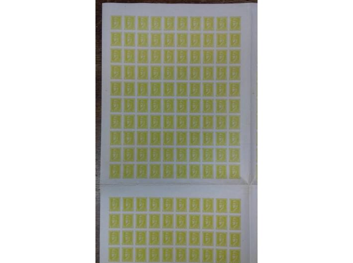 Opis: Michel br. 146 tiskarski arak u probnoj žutozelenoj boji. Donji red, marke djelimično odrezane. Izuzetno rijetko. Vrlo povoljna početna cijena.