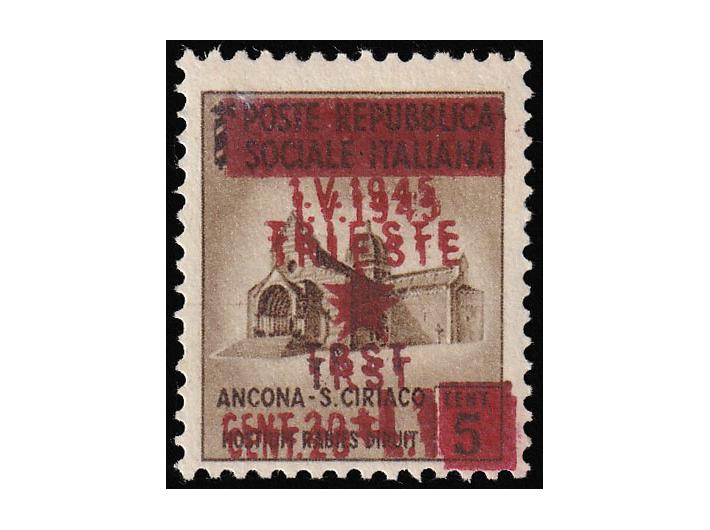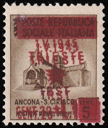 • Michel br. 16 DD provizorno izdanje za Trst, dvostruki pretisak.