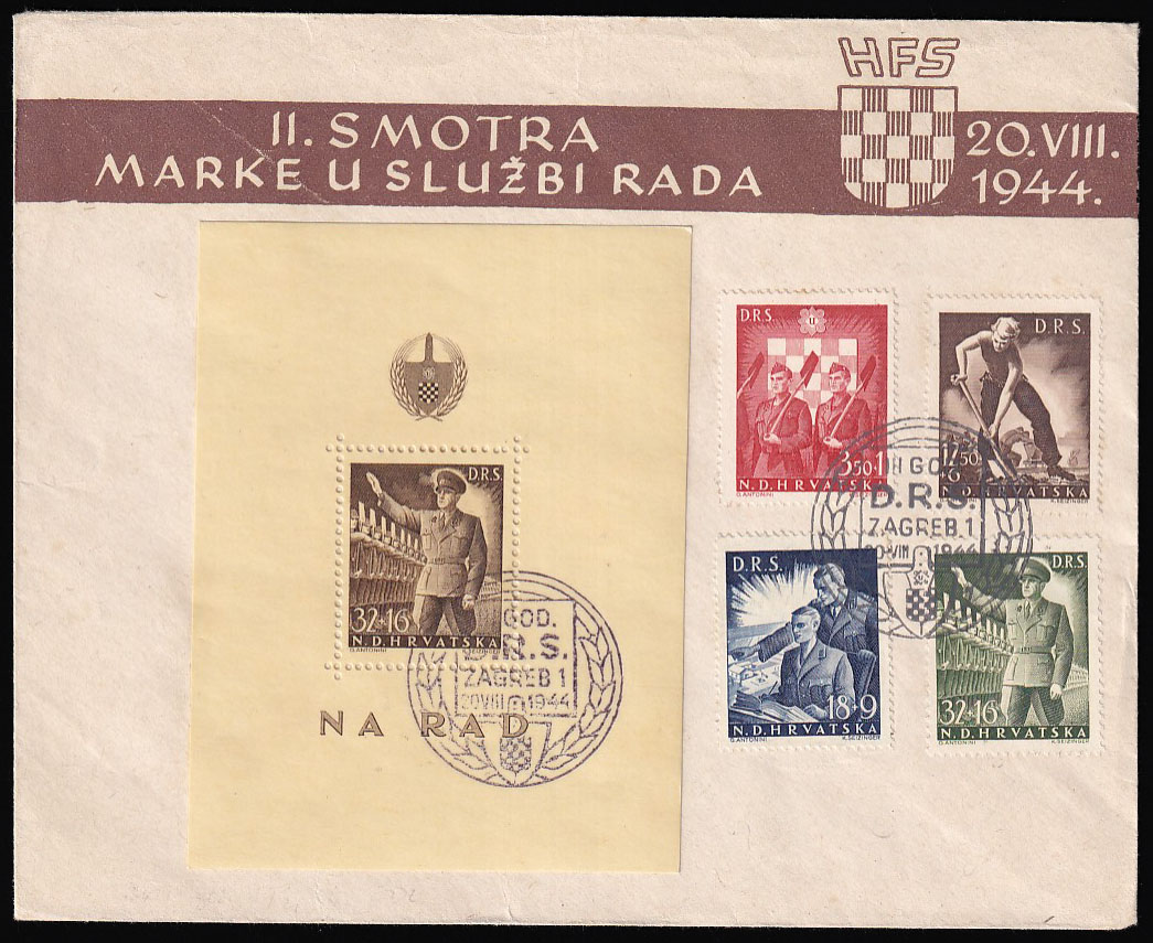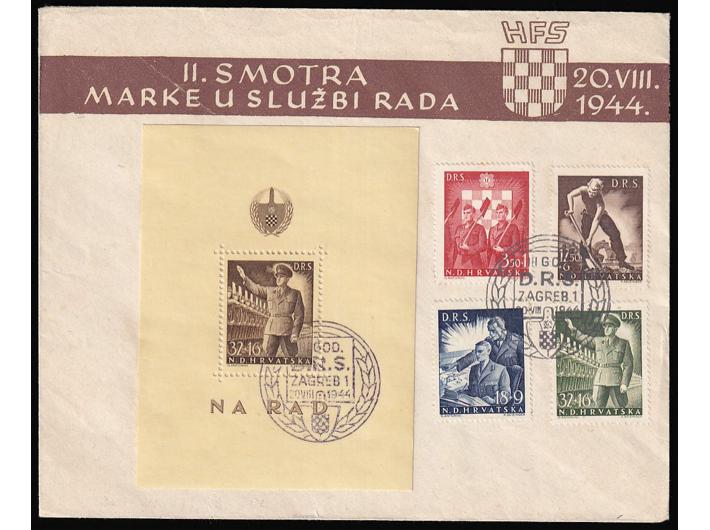 Opis: Michel br. 162/166 FDC s blokom. Marke su žigosane strojnim žigom dok je blok ručnim. Rijetko, dobra kvaliteta.