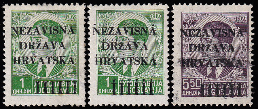 Opis: Michel br. 2, pogreška pretiska 30. polja, otvoreno R u DRŽAVA. Opisano u BP pod 2 TP-III; Michel br. 2 zbog nestručnog umetanja arka prilikom pretiskivanja daje dojam dvostrukog pretiska i Michel br. 8 zamrljani pretisak.
