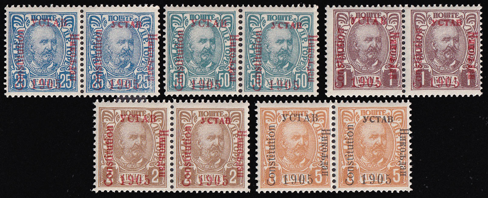 - Michel br. 51/60, vodoravni parov i pretiscima u tipu I/IV.