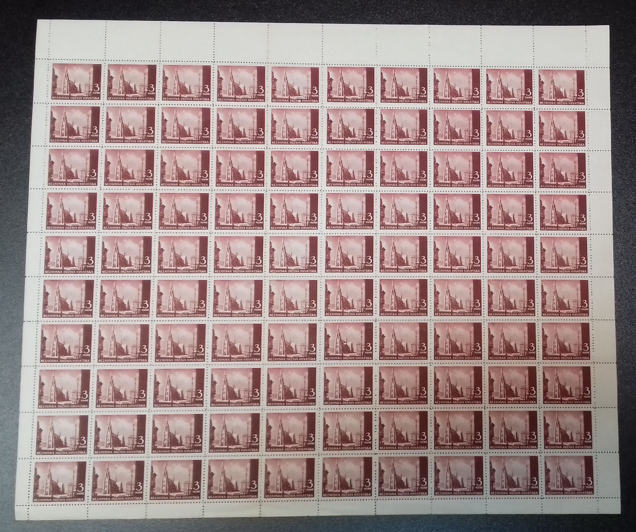 Opis: Michel br. 53 kompletan arak otisnut na papiru za offsetni tisak. Prvi šalterski arak. Dobra kvaliteta.