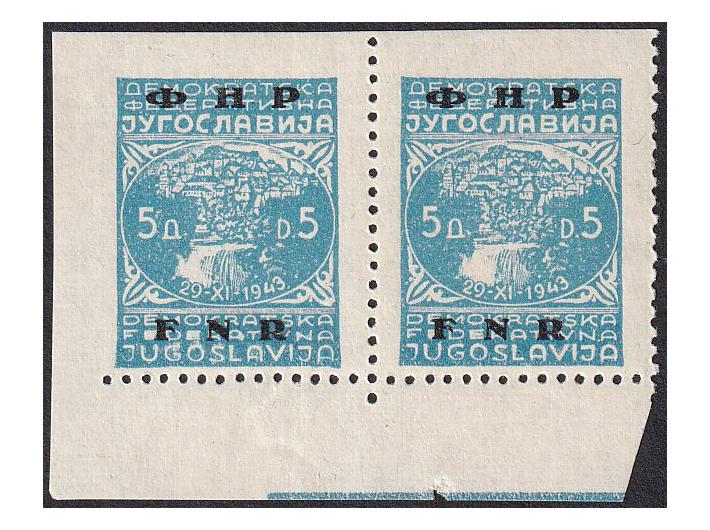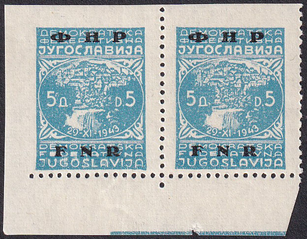 Opis: Michel br. 594U vodoravni par iz donjeg lijevog kuta arka lijevo i gore nezupčan. Odlična kvaliteta.