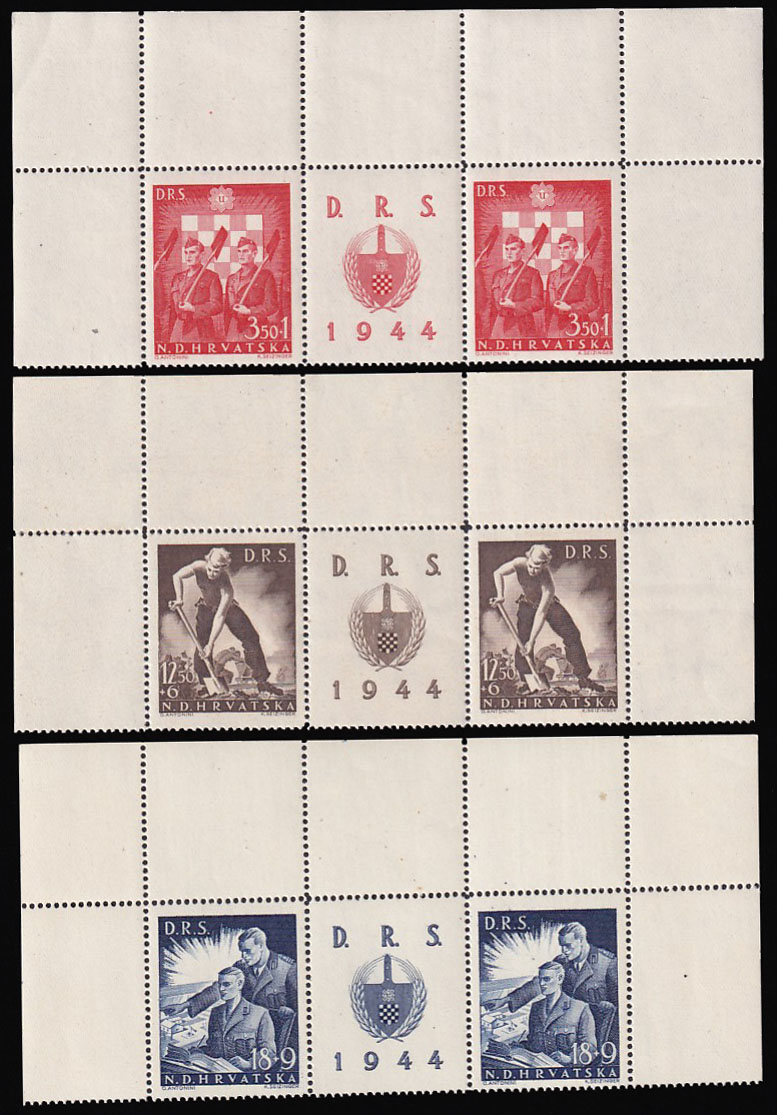 • Michel br. 62B-64B gornji trojac arka s vinjetom u sredini zupčan linijski 14 ½