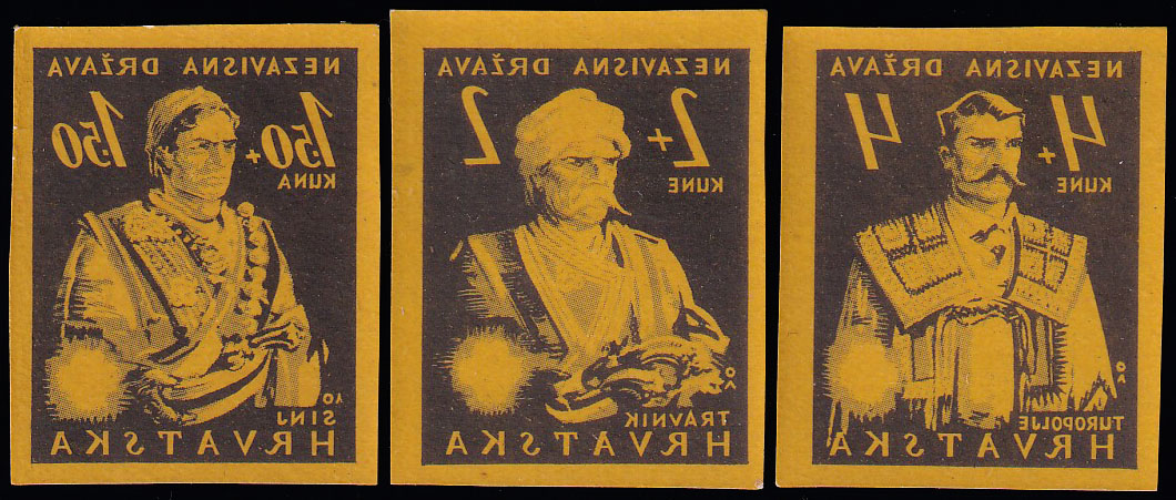 Opis: Michel br. 66/68 zrcalni otisci na papiru za umnažanje. Sve opisano u Ercegoviću na str. 240. Odlična kvaliteta, garancija aukcije.